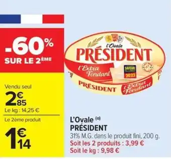 Actuellement en offre chez Carrefour Market : L'ovale président ✅ Valable du 10-02 au 22-02.