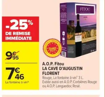 Actuellement en offre chez Carrefour Market : LA CAVE D’AUGUSTIN FLORENT A.O.P. Fitou ✅ Valable du 2-01 au 11-01.