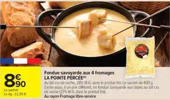Actuellement en offre chez Carrefour Market : LA POINTE PÉRCÉE Fondue savoyarde aux 4 fromages ✅ Valable du 27-01 au 8-02.