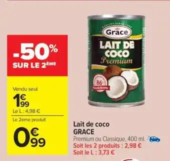 Lait de coco GRACE offres et promotions en ligne chez Carrefour Market