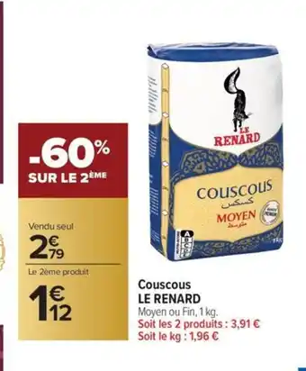 Actuellement en offre chez Carrefour Market : LE RENARD Couscous ✅ Valable du 13-03 au 22-03.