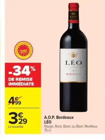 Actuellement en offre chez Carrefour Market : LÉO A.O.P. Bordeaux ✅ Valable du 2-01 au 11-01.