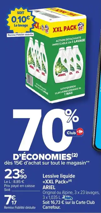 Lessive liquide xxl pack ariel offres et promotions en ligne chez Carrefour Market