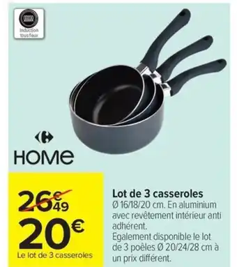 Lot de 3 casseroles : offres et promos Carrefour Market à découvrir
