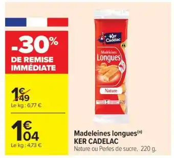 Actuellement en offre chez Carrefour Market : Madeleines longues KER CADELAC ✅ Valable du 17-02 au 1-03.