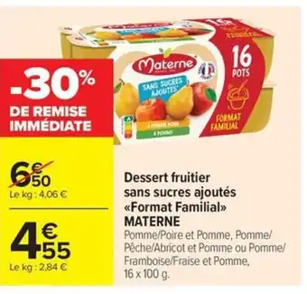 Y a-t-il une promotion sur MATERNE Dessert fruitier sans sucres ajoutés Format Familial la semaine prochaine chez Carrefour Market ?