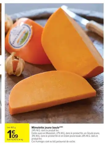 En plus de l'offre Mimolette jeune boule, Carrefour Market propose une large gamme de produits. Consultez le Catalogue Carrefour Market hebdomadaire pour découvrir les meilleures offres et promotions. En plus de Mimolette jeune boule, il y a aussi : KROON Mimolette jeune, Mimolette & Boule rustique.