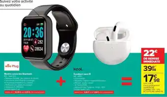 Offre Montre connectée Bluetooth + Écouteurs sans fil chez Carrefour Market