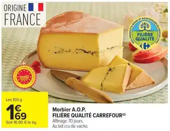 Actuellement en offre chez Carrefour Market : Morbier a.o.p. filière qualité carrefour ✅ Valable du 28-04 au 10-05.