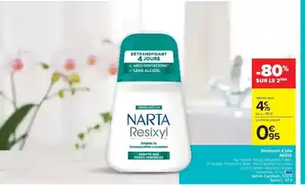 En plus de l'offre Narta - nettoyant renne, Carrefour Market propose une large gamme de produits. Consultez le Catalogue Carrefour Market hebdomadaire pour découvrir les meilleures offres et promotions. En plus de Narta - nettoyant renne, il y a aussi : Narta - déodorant roll-on invisible narta, Narta déodorant biles & Déodorant billes NARTA.