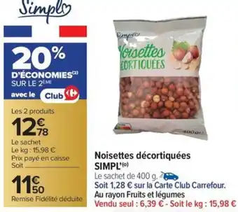 Actuellement en offre chez Carrefour Market : Noisettes décortiquées simpl' ✅ Valable du 17-02 au 2-03.
