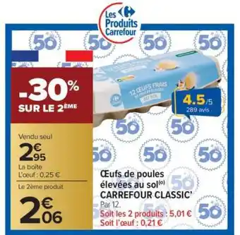 Oeufs de poules élevées au sol Carrefour Classic