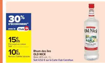 Offre OLD NICK Rhum des îles chez Carrefour Market