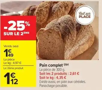 Actuellement, Pain complet est en promotion chez Carrefour Market. Toutes les informations utiles comme le prix, les conditions et la durée de validité sont affichées sur cette page. Consultez également les promotions similaires pour Pain complet, afin de faire le meilleur choix. La promo Pain complet est valable du 27-01-2026 au 08-02-2026. Si elle est expirée, regardez les autres offres équivalentes. Vous pouvez aussi suivre cette catégorie de produit pour être alerté lorsqu’une nouvelle promotion Pain complet apparaît chez Carrefour Market.Questions fréquemment posées au sujet de Pain complet