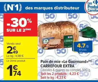 En plus de l'offre Pain de mie Le Gourmand CARREFOUR EXTRA, Carrefour Market propose une large gamme de produits. Consultez le Catalogue Carrefour Market hebdomadaire pour découvrir les meilleures offres et promotions. En plus de Pain de mie Le Gourmand CARREFOUR EXTRA, il y a aussi : Carrefour extra pain de mie le gourmand, Carrefour - pain de mie le gourmand & Harrys pain de mie extra moelleux.
