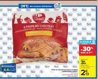 Offre Pains au chocolat pur beurre surgelés CARREFOUR CLASSIC’ chez Carrefour Market