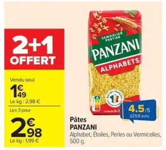 En plus de l'offre PANZANI Pâtes, Carrefour Market propose une large gamme de produits. Consultez le Catalogue Carrefour Market hebdomadaire pour découvrir les meilleures offres et promotions. En plus de PANZANI Pâtes, il y a aussi : PANZANI Pâtes, PANZANI Pates & PANZANI Pates 3 minute.