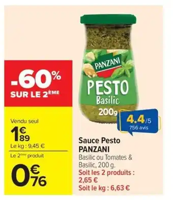 Offre PANZANI Sauce Pesto chez Carrefour Market