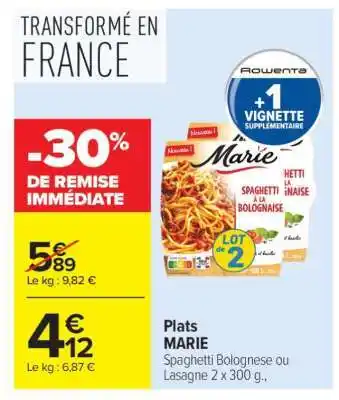 Plats MARIE offres et promotions en ligne chez Carrefour Market