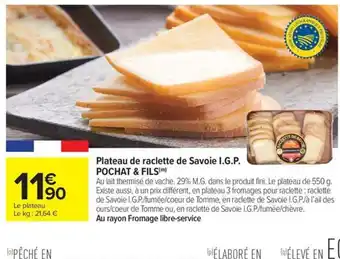 Actuellement en offre chez Carrefour Market : POCHAT & FILS Plateau de raclette de Savoie I.G.P. ✅ Valable du 13-01 au 25-01.