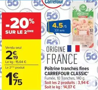 Actuellement en offre chez Carrefour Market : Poitrine tranches fines carrefour classic ✅ Valable du 28-04 au 10-05.