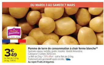 Y a-t-il une promotion sur Pomme de terre de consommation à chair ferme blanche la semaine prochaine chez Carrefour Market ?