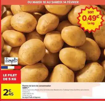 Offre POMME DE TERRE DE CONSOMMATION chez Carrefour Market