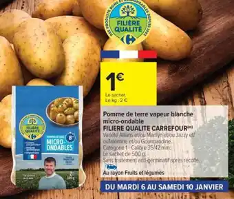 Actuellement en offre chez Carrefour Market : Pomme de terre vapeur blanche micro-ondable ✅ Valable du 6-01 au 18-01.