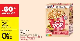En plus de l'offre Pop corn vico, Carrefour Market propose une large gamme de produits. Consultez le Catalogue Carrefour Market hebdomadaire pour découvrir les meilleures offres et promotions. En plus de Pop corn vico, il y a aussi : Vico pop corn, POP CORN Caramel & SUN SNACKS POP CORN AU CARAMEL.