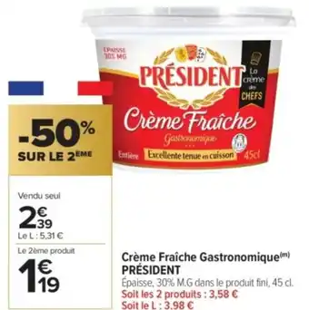 Actuellement en offre chez Carrefour Market : PRÉSIDENT Crème Fraîche Gastronomique ✅ Valable du 19-12 au 31-12.