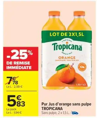 PUR JUS D’ORANGE SANS PULPE “TROPICANA” offres et promotions en ligne chez Carrefour Market
