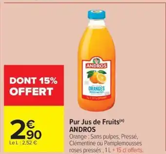 En plus de l'offre Pur jus de fruits andros, Carrefour Market propose une large gamme de produits. Consultez le Catalogue Carrefour Market hebdomadaire pour découvrir les meilleures offres et promotions. En plus de Pur jus de fruits andros, il y a aussi : Andros - pur jus de fruits, Andros - pur jus de fruits oranges sans & Pur jus refrigere offre decouverte andros.