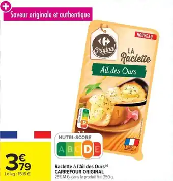 Actuellement en offre chez Carrefour Market : Raclette à l'ail des ours carrefour original ✅ Valable du 3-02 au 28-02.