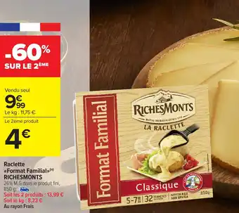Actuellement en offre chez Carrefour Market : Raclette format familial richesmonts ✅ Valable du 26-12 au 4-01.