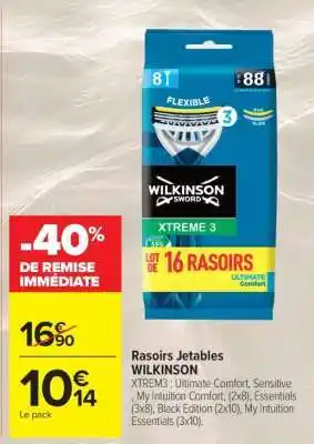 Actuellement en offre chez Carrefour Market : RASOIRS JETABLES “WILKINSON” ✅ Valable du 3-03 au 15-03.