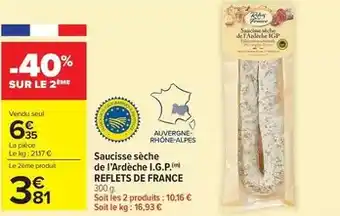 Actuellement en offre chez Carrefour Market : Reflets de france - saucisse sèche de l'ardèche i.g.p ✅ Valable du 31-03 au 12-04.
