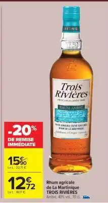 Actuellement en offre chez Carrefour Market : Rhum agricole de La Martinique TROIS RIVIÈRES ✅ Valable du 24-02 au 8-03.