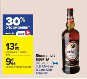 Actuellement en offre chez Carrefour Market : Rhum Ambré Negrita ✅ Valable du 20-01 au 2-02.