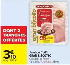 Actuellement en offre chez Carrefour Market : Rovagnati - jambon cuit ✅ Valable du 20-01 au 2-02.