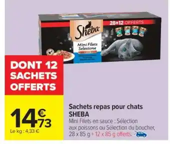 Actuellement en offre chez Carrefour Market : Sachets repas pour chats SHEBA ✅ Valable du 13-01 au 25-01.