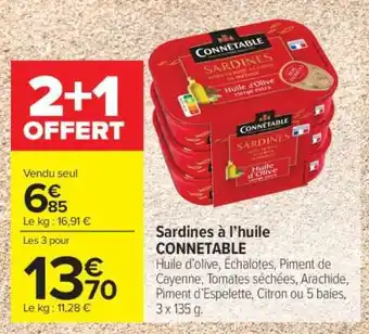 Actuellement en offre chez Carrefour Market : Sardines à l'Huile CONNETABLE ✅ Valable du 6-01 au 18-01.