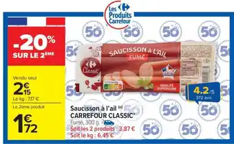 Offre Saucisson à l'ail CARREFOUR CLASSIC' chez Carrefour Market