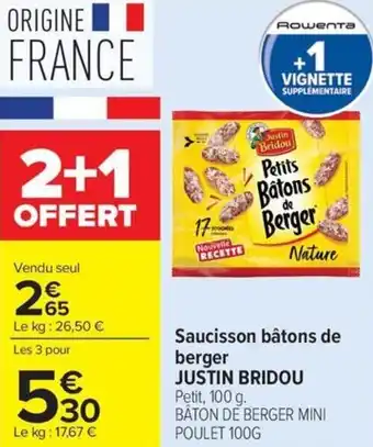 Saucisson bâtons de berger justin bridou offres et promotions en ligne chez Carrefour Market