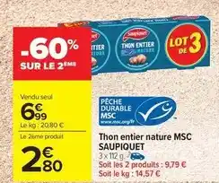 Saupiquet - thon entier nature msc offres et promotions en ligne chez Carrefour Market