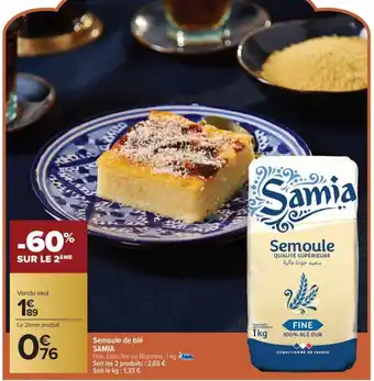 Actuellement en offre chez Carrefour Market : Semoule de blé samia ✅ Valable du 17-02 au 2-03.