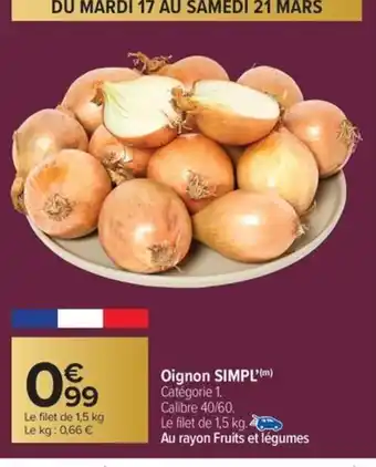 Actuellement en offre chez Carrefour Market : SIMPL Oignon ✅ Valable du 13-03 au 22-03.