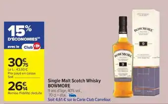 En plus de l'offre Single Malt Scotch Whisky BOWMORE, Carrefour Market propose une large gamme de produits. Consultez le Catalogue Carrefour Market hebdomadaire pour découvrir les meilleures offres et promotions. En plus de Single Malt Scotch Whisky BOWMORE, il y a aussi : Single Malt Scotch Whisky CARDHU, Islay single malt scotch whisky laphroaig & Single Malt Scotch Whisky TALISKER SKYE.