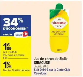 SIRACUSE Jus de citron de Sicile : offres et promos Carrefour Market à découvrir