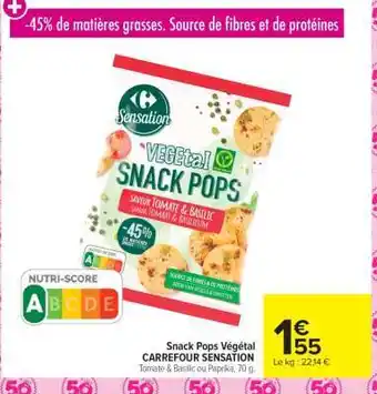 En plus de l'offre Snack Pops Végétal, Carrefour Market propose une large gamme de produits. Consultez le Catalogue Carrefour Market hebdomadaire pour découvrir les meilleures offres et promotions. En plus de Snack Pops Végétal, il y a aussi : Carrefour sensation snack pops végétal, Snack pops végétal carrefour sensation & Snack pops végétal carrefour sensation.