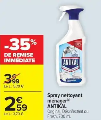 Actuellement en offre chez Carrefour Market : Spray nettoyant ménager antikal ✅ Valable du 21-04 au 3-05.